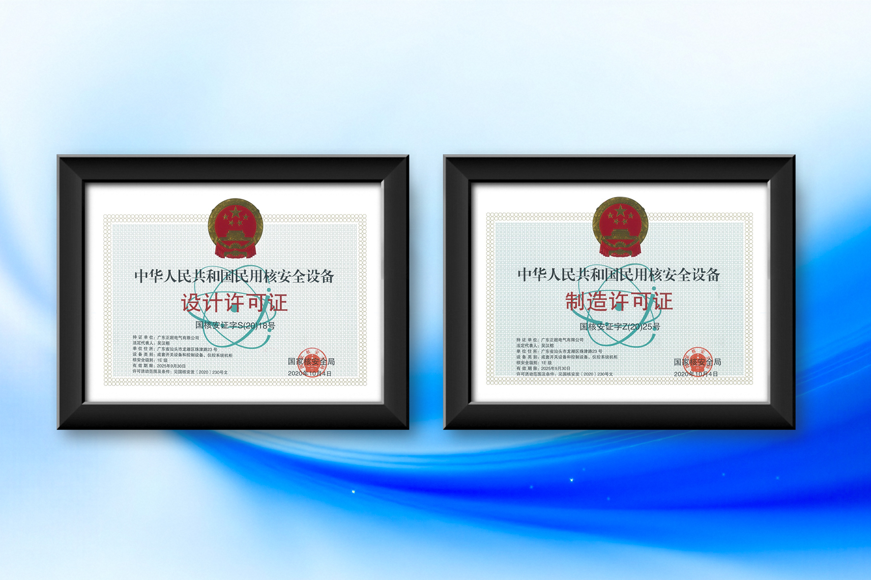 In 2015, we obtained the Civil Nuclear Safety Level Electrical Equipment Design and Manufacturing License.