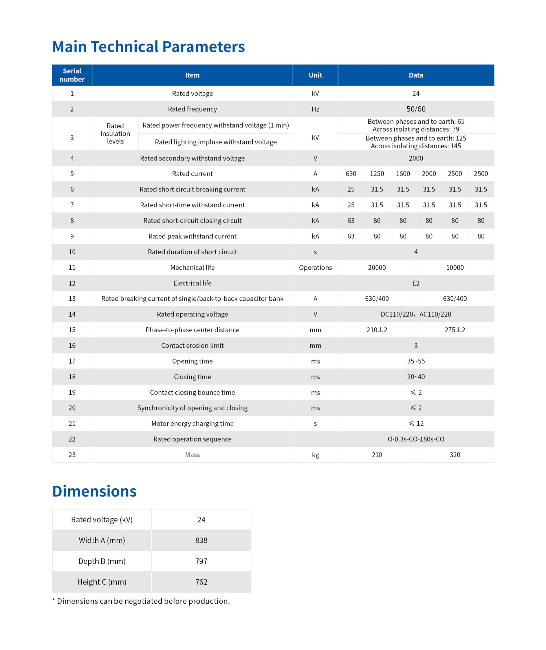 / 24kV Indoor Vacuum Circuit Breaker